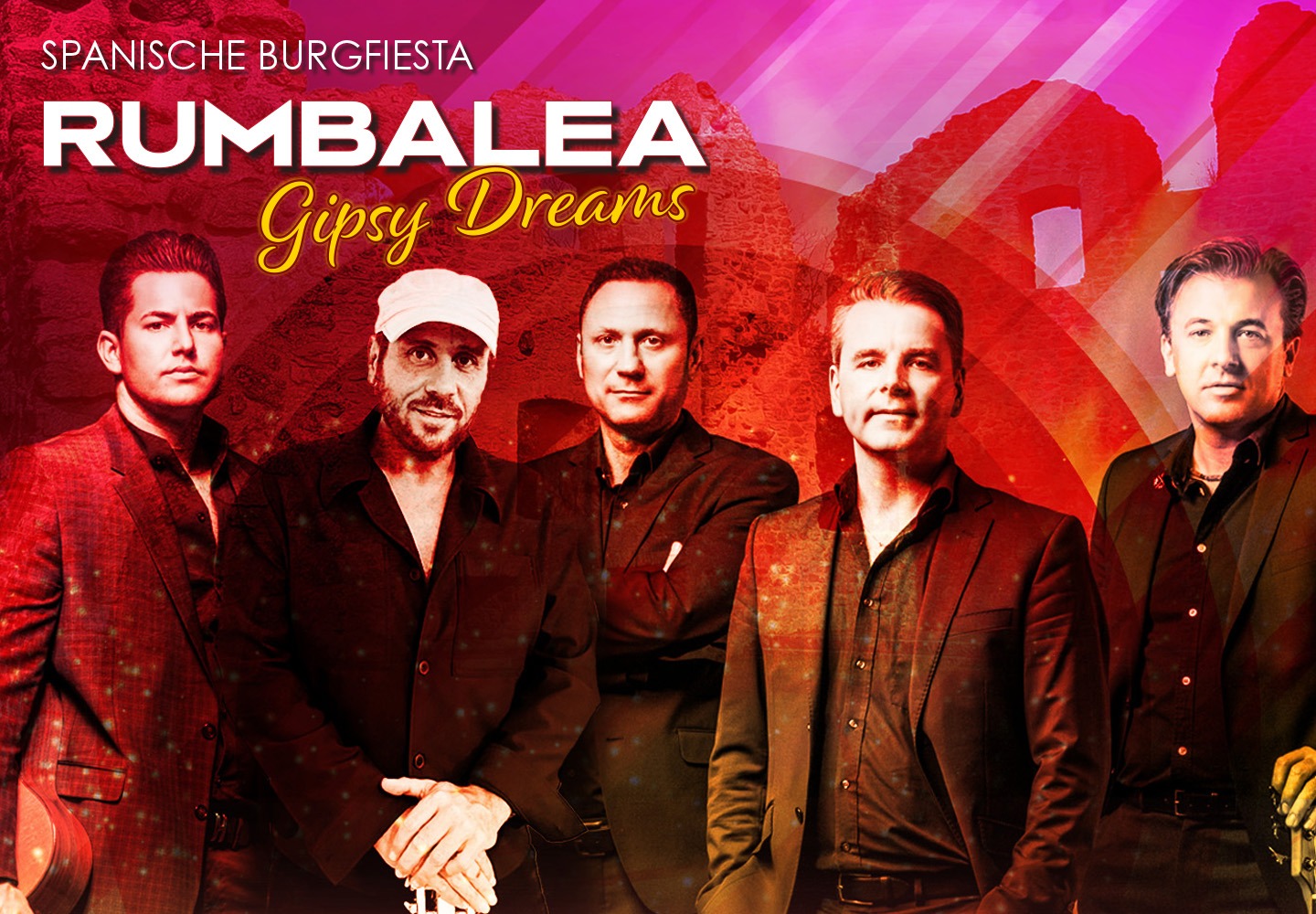 Burgruine Neuwindeck Neuwindeckstraße 8,, Lauf, GermanyZwei magische Sommerabende voller Leidenschaft, Rhythmus und mediterranem Zauber – Willkommen zur Spanischen Burgfiesta! Wenn die Sonne langsam hinter den alten Mauern der Burgruine Neuwindeck versinkt, erwacht Spanien zum Leben: Feurige Gitarren, mitreißende Stimmen und der unverwechselbare Sound der legendären Gipsy Kings verschmelzen zu einem unvergesslichen Open-Air- Erlebnis. RUMBALEA – fünf Ausnahmemusiker, die den modernen …
